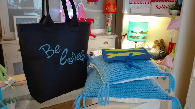 Mala em feltro, bordada e forrada (25,00), poncho criança 3/4 anos (20,00)